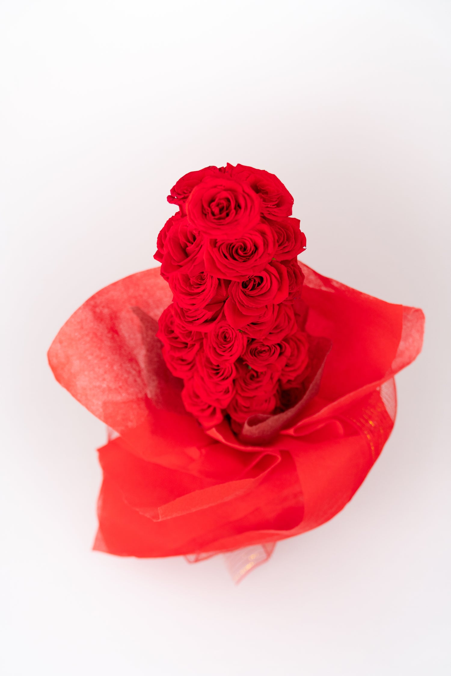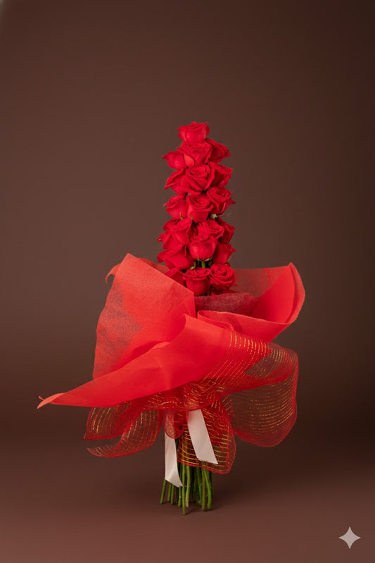 Bouquet con 75 rosas frescas de exportación con mallas reutlizables. TAMAÑO TOTAL DISEÑO: Aproximado 50 cm...