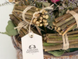 Diseño floral con 12 rosas preservadas en base de corteza reutilizable y complementos verdes.